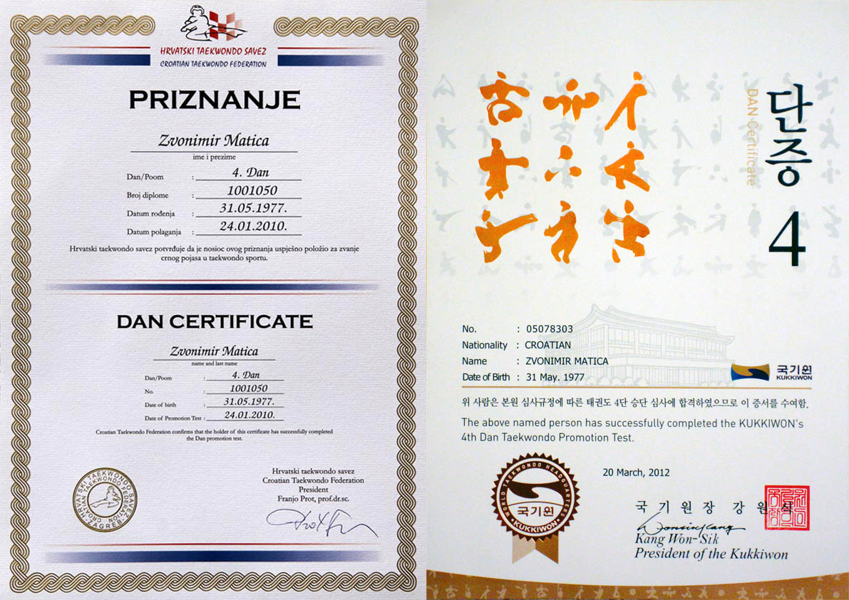 Zvonimir Matica, trener Taekwondo-a, 4. DAN/WTF i